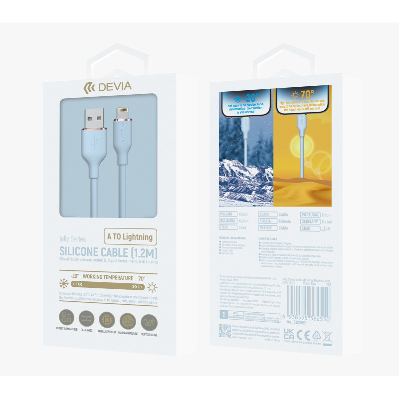 Jelly Series A to Lightning Silicone Cable(2.4A 1.2M) (Blue)