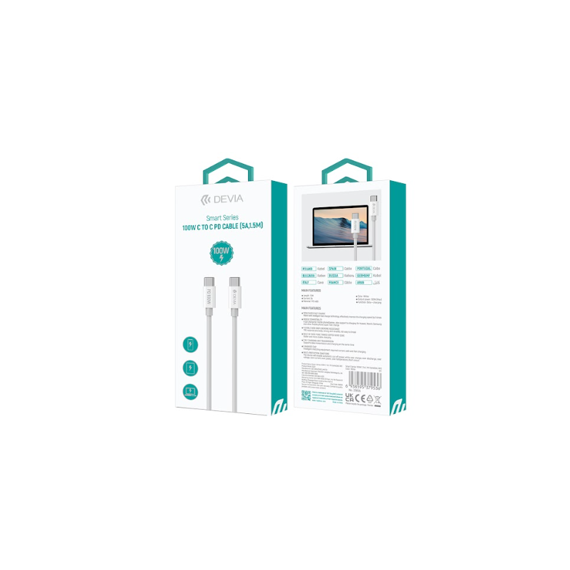 wishlist compare Vista rápida Devia Smart Series 100W C To C PD Cable(5A,1.5M) (Black) $ 4,90 Añadir al carrito Availability: 9 In Stock