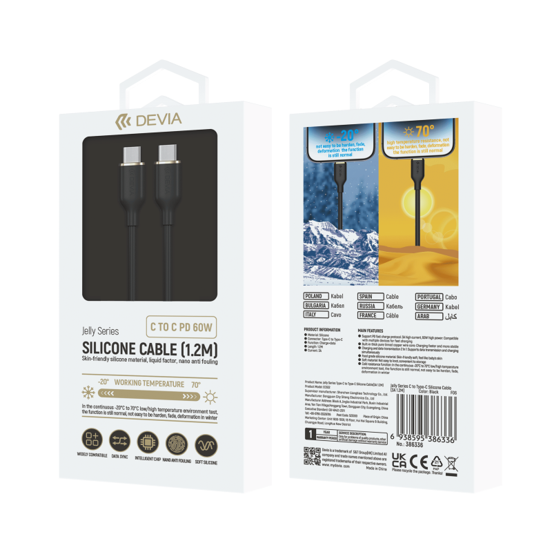 Jelly Series C to Type-C Silicone Cable (3A 1.2M) (Black)