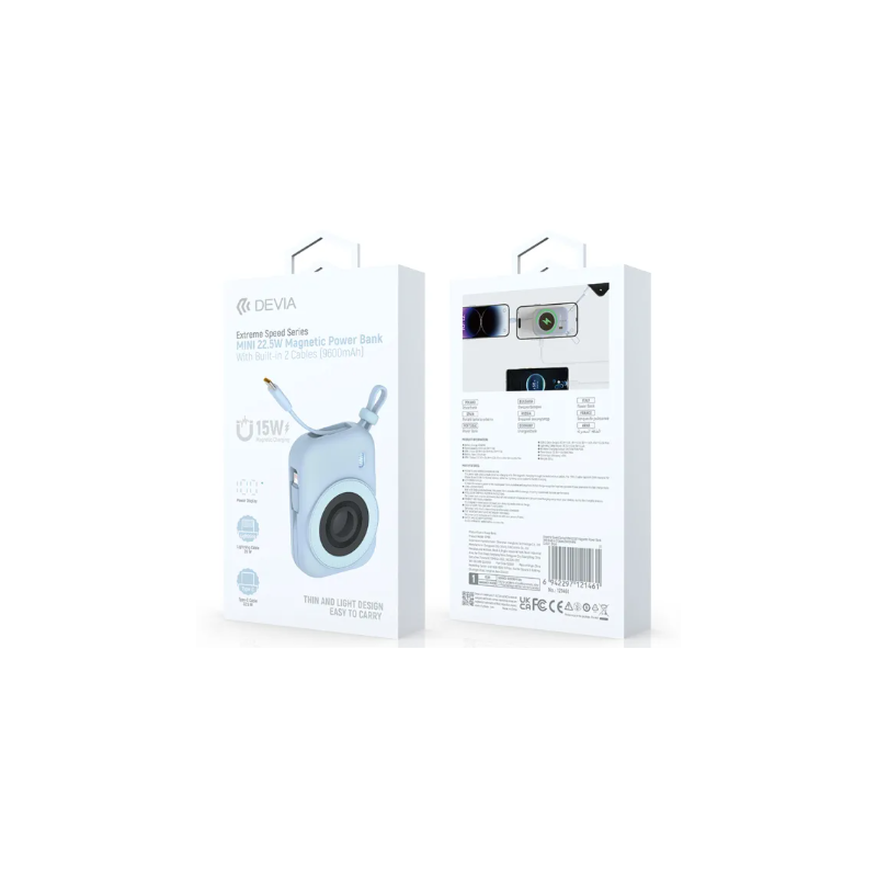 Extreme Speed Series MINI 22.5W Magnetic Power Bank With Built-in 2 Cables (10000mAh) (Blue)