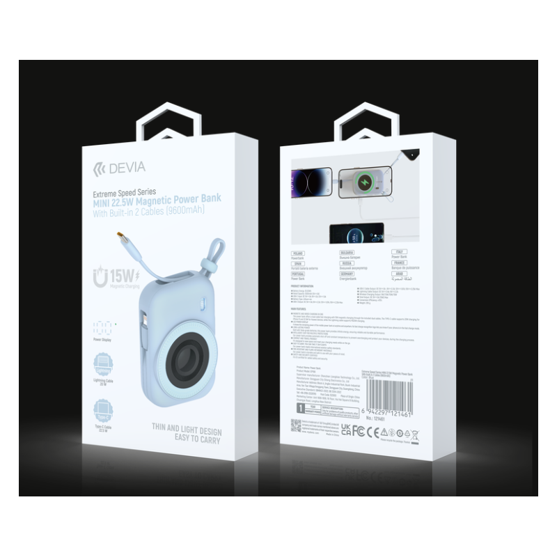 Extreme Speed Series MINI 22.5W Magnetic Power Bank With Built-in 2 Cables (10000mAh) (White)